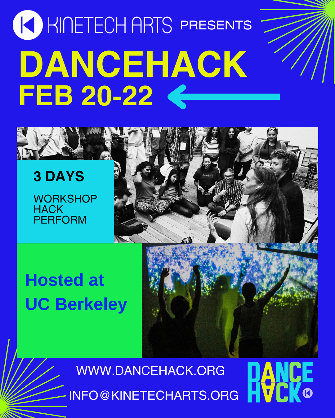 Join us for 3 days of hands-on workshops, serendipitous connections and collaborations — let's hack, move, play, and uncover new ways in which dance and technology converge!